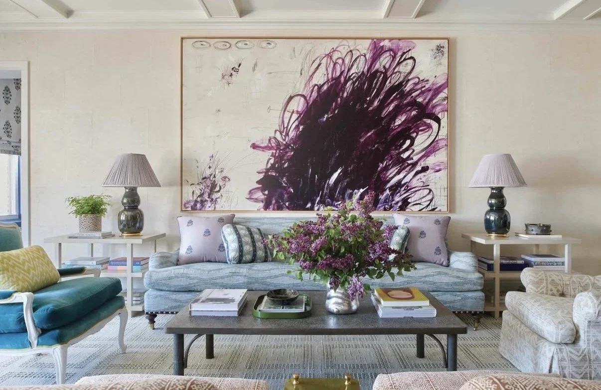 "Divine Innocence" 2021, 84"x60" by Karina Gentinetta as featured in May 2024 issue of House Beautiful. Interior Design by Charlotte Lucas